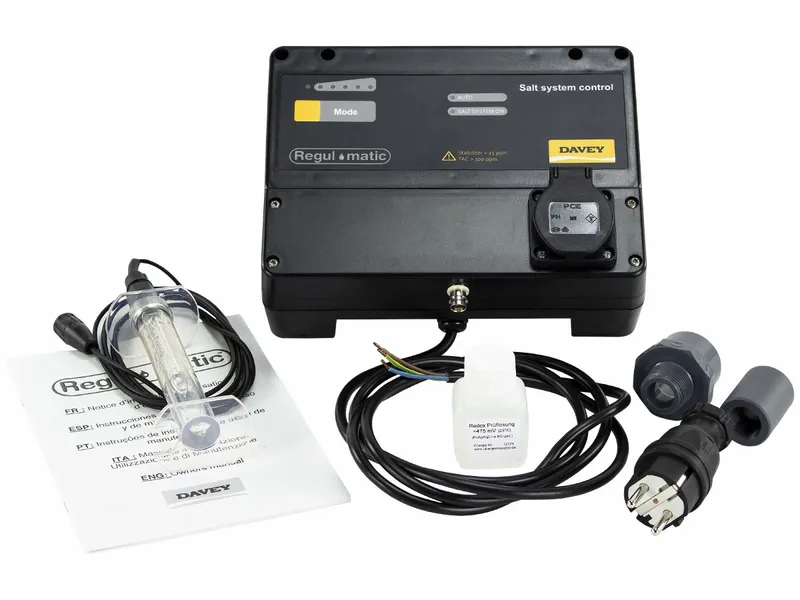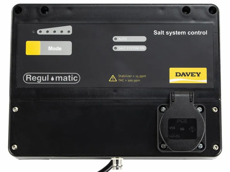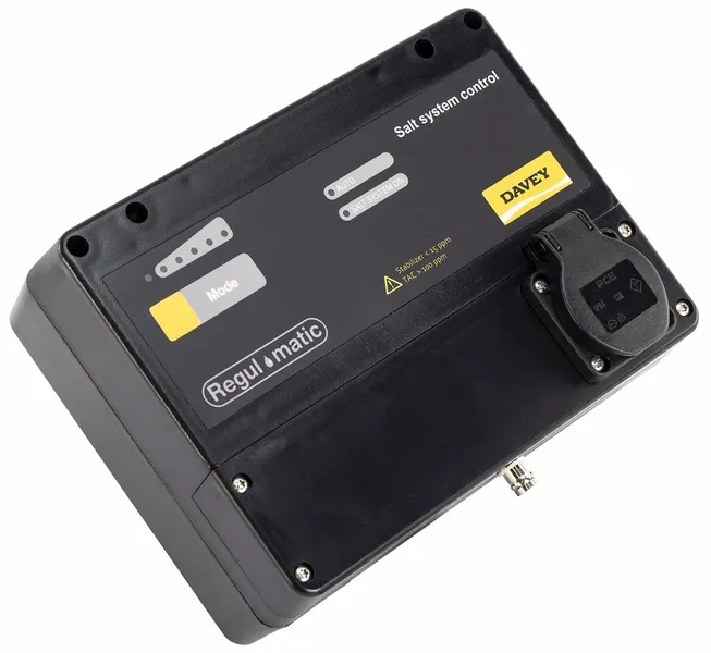 De Davey (voorheen Monarch) Regul Matic meet de chloorwaarde van het zwembadwater en regelt automatisch de chloorproductie van jouw zoutelectrolyse systeem. Nooit meer te veel of te weinig chloor in jouw zwembad met deze RegulMatic.