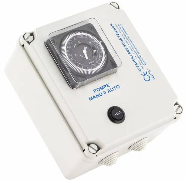Zet je zwembadpomp op een automatische sturing om meer controle te krijgen over de looptijd en daarmee het energieverbruik van je pomp. Met deze basis sturingkast heb je de mogelijkheid om een dagklok in te stellen de zwembadpomp handmatig in te schakelen door de schakelaar op de schakelkast. Zo heb je altijd de juiste controle over je filterinstallatie en draait de zwembadpomp alleen op tijden wanneer dit echt nodig is.