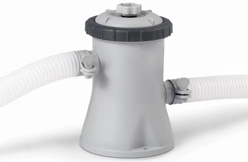 De filterpomp die wordt meegeleverd heeft een pompcapaciteit van 1.250 liter per uur. In ongeveer 4-5 uur heeft de pomp het bad volledig rondgepompt. Denk eraan om iedere twee weken de filter te vervangen. De filter cartridge die je nodig hebt voor de Intex filterpomp 1250 liter/uur is Intex filter type H.