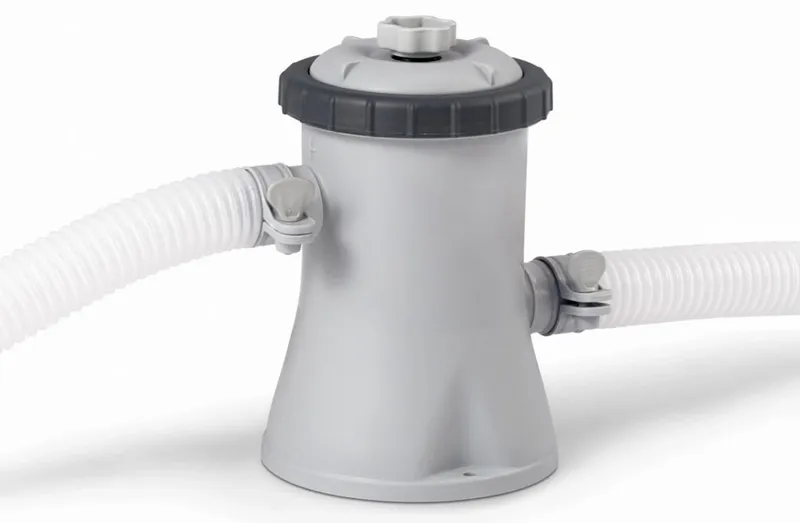 Dit Intex Metal Frame zwembad wordt geleverd met pomp. Hoe handig is dat? Het zwembad wordt geleverd als één pakket. Het is dan ook niet mogelijk dit zwembad zonder deze pomp te leveren. De filterpomp die wordt meegeleverd heeft een pompcapaciteit van 1250 liter per uur. In ongeveer 4-6 uur heeft de pomp het bad volledig rondgepompt. Denk eraan om iedere twee weken je filter te vervangen. De filtercartridge die je nodig hebt voor de Intex filterpomp van 1250 liter/uur is