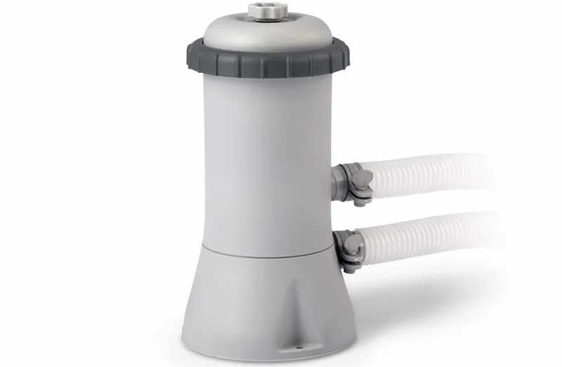Dit Intex Metal Frame zwembad wordt geleverd met pomp. Hoe handig is dat? Het zwembad wordt geleverd als één pakket. Het is dan ook niet mogelijk dit zwembad zonder deze pomp te leveren. De filterpomp die wordt meegeleverd heeft een pompcapaciteit van 2271 liter per uur. In ongeveer 4-6 uur heeft de pomp het bad volledig rondgepompt. Denk eraan om iedere twee weken je filter te vervangen. De filtercartridge die je nodig hebt voor de Intex filterpomp van 2271 liter/uur is