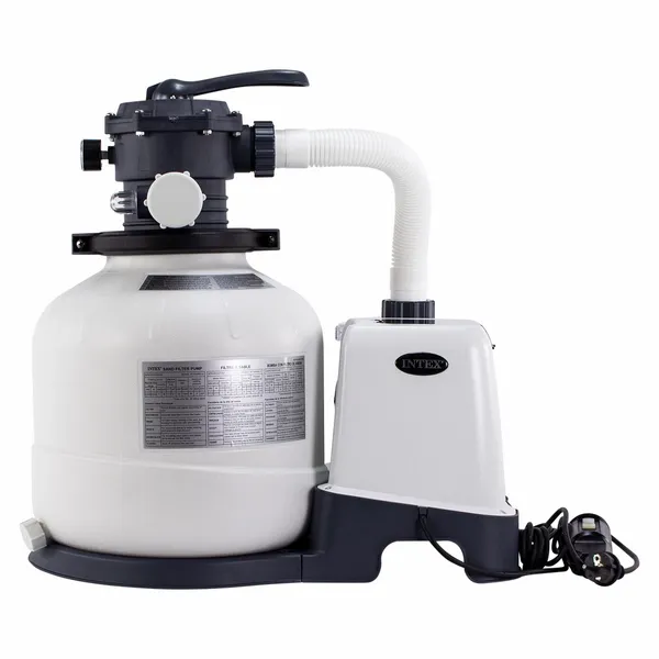 Heb je een Intex zwembad, en wil je deze voorzien van de meest efficiënte filtratietechniek? Dan is, afhankelijk van de grootte en weerstanden van je zwembad, dit de set die je nodig hebt. Deze zandfilterpomp verpompt tot 8.000 liter water per uur. Dit maakt de Intex zandfilterpomp geschikt voor zwembaden met een waterinhoud tot 32.000 liter. Heb je wat meer weerstanden, denk aan een zoutwatersysteem en/of warmtepomp? Houd dan een maximale waterinhoud aan van 24.000 liter.